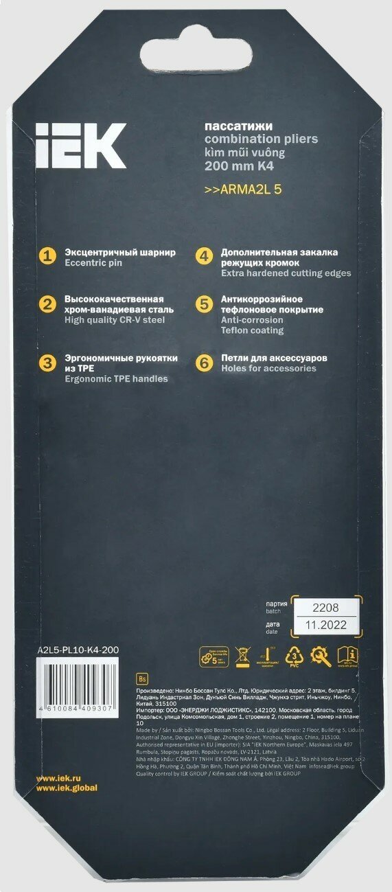 Пассатижи Iek 200мм K4 ARMA2L 5, A2L5-PL10-K4-200 интересное:
