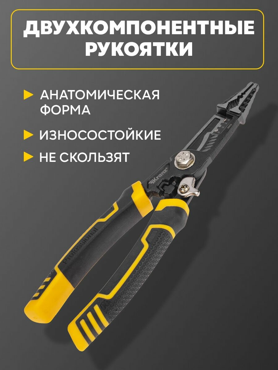 Плоскогубцы профессиональные многофункциональные 200мм KRANZ