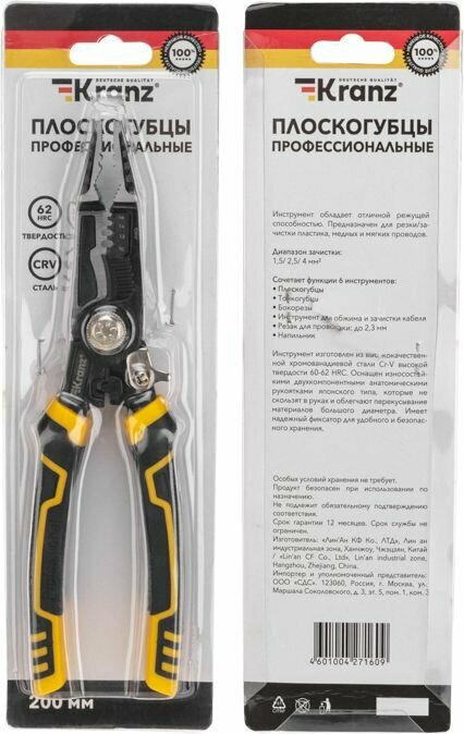 Kranz (KR-12-4655-5) Плоскогубцы профессиональные многофункциональные 200 мм интересное: