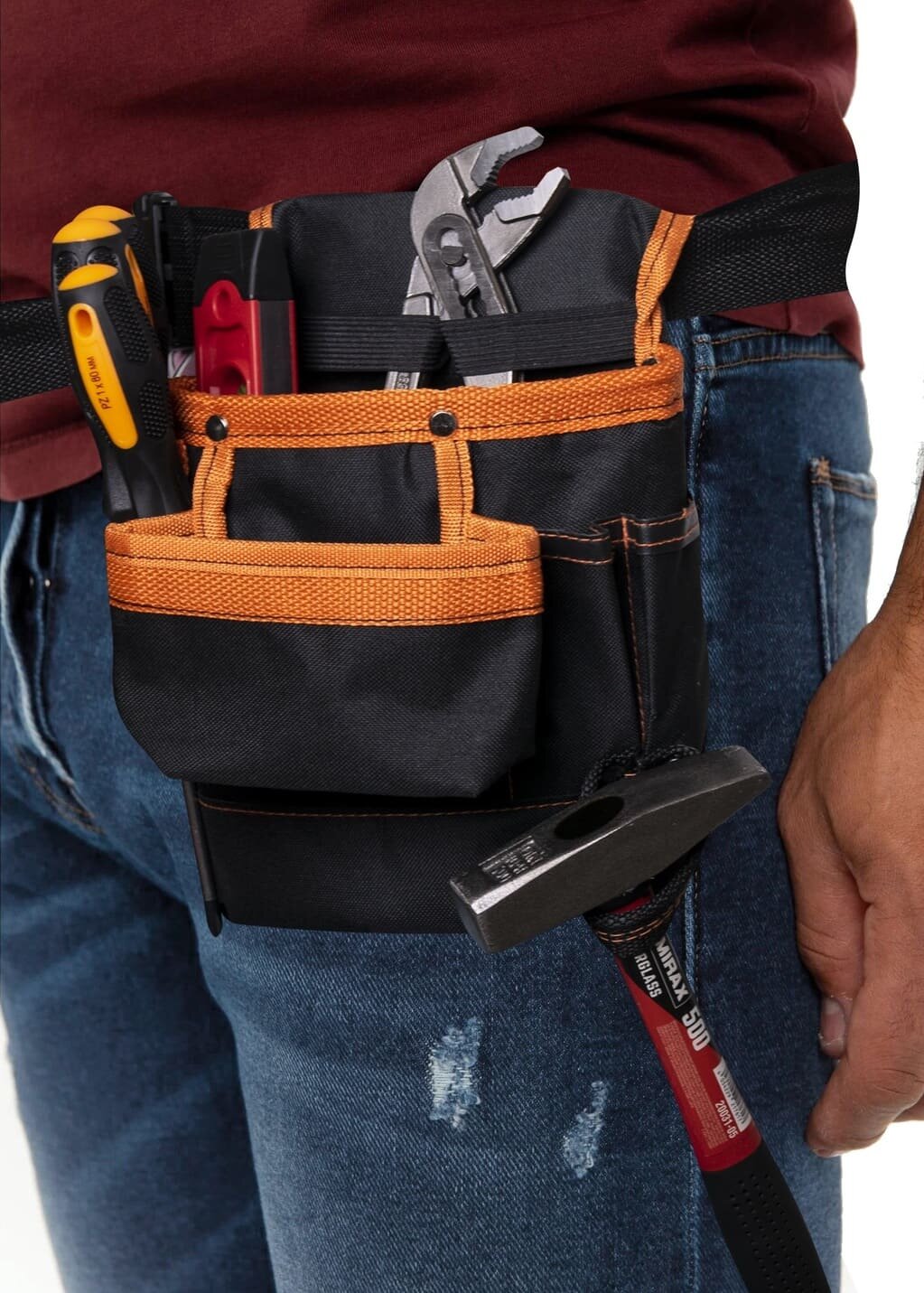 Сумка-пояс для инструментов универсальная строительная 28 карманов с держателем для молотка и рулетки