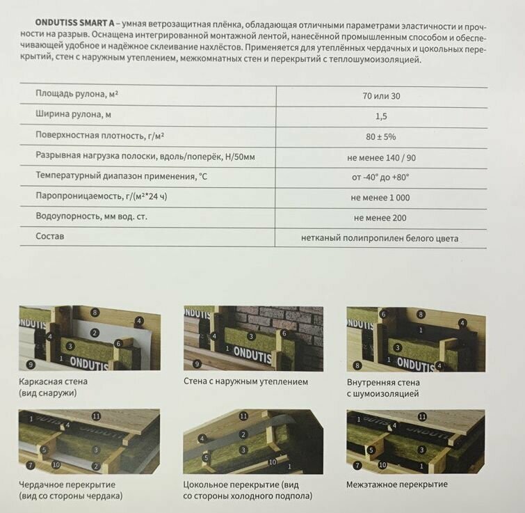 Пленка строительная ветрозащитная Ондутис SMART A (аналог SMART A100) с интегрированной монтажной лентой, 70м2 интересное: