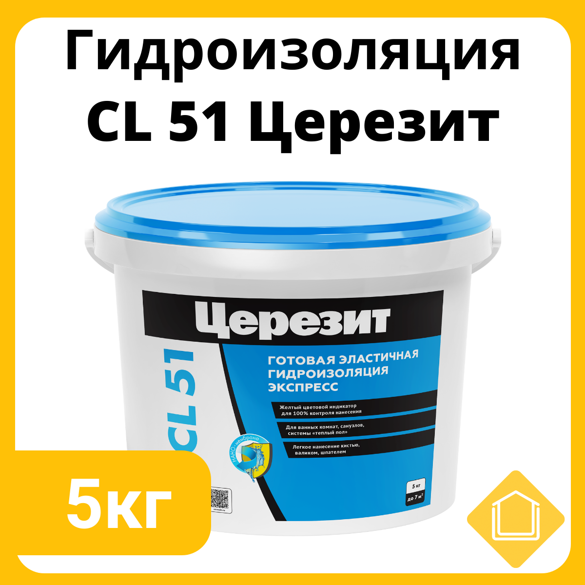 Гидроизоляционная мастика Ceresit CL 51 Экспресс Nano мембрана, желтая (5кг)