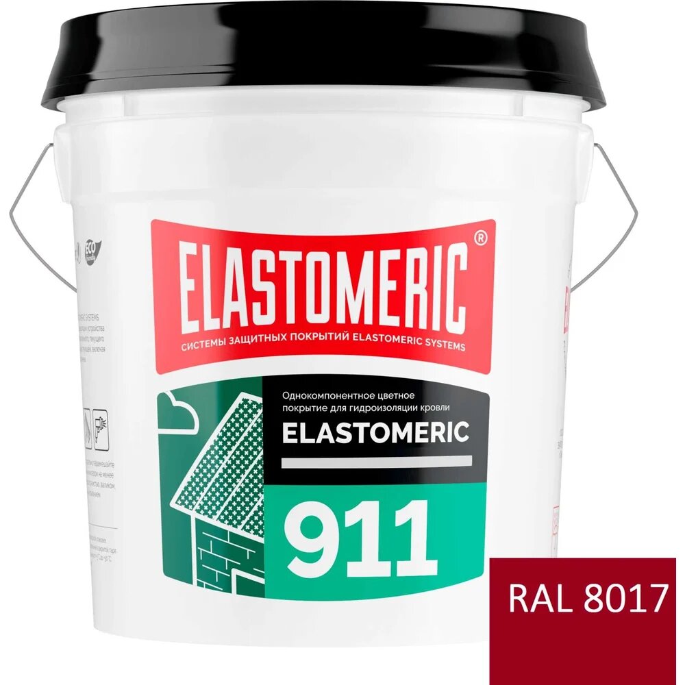 Мастика для гидроизоляции металлической и шиферной кровли ELASTOMERIC 911, окраска и защита от коррозии металлических крыш (цветная жидкая резина), 20кг, RAL 3003 красный рубин