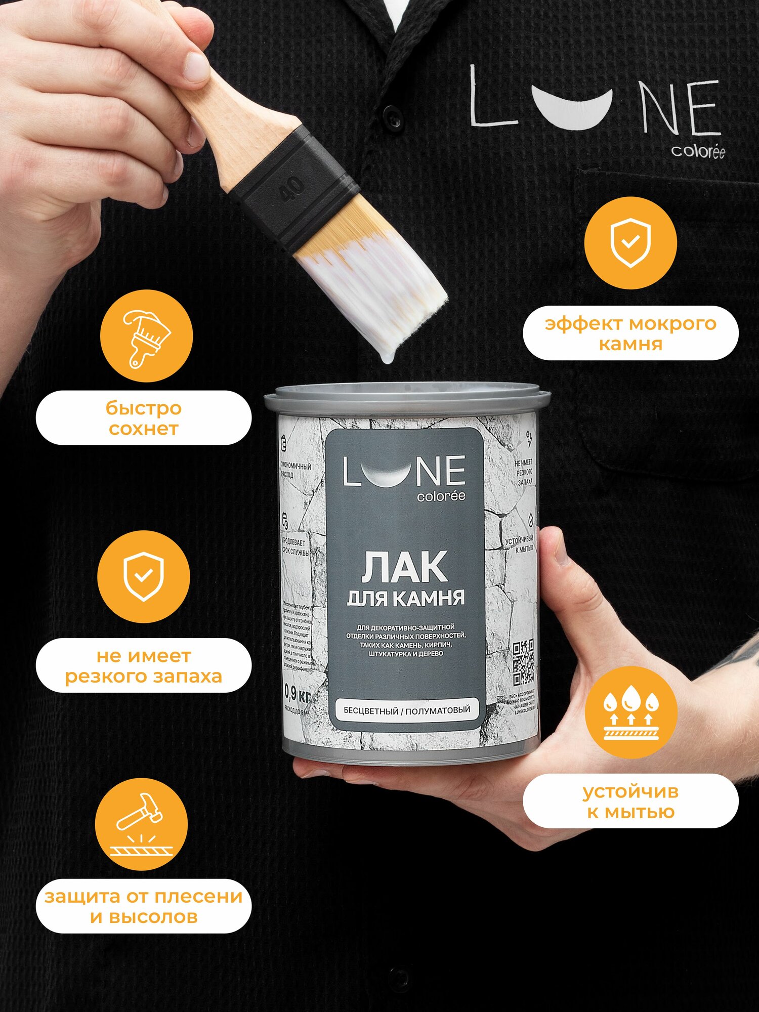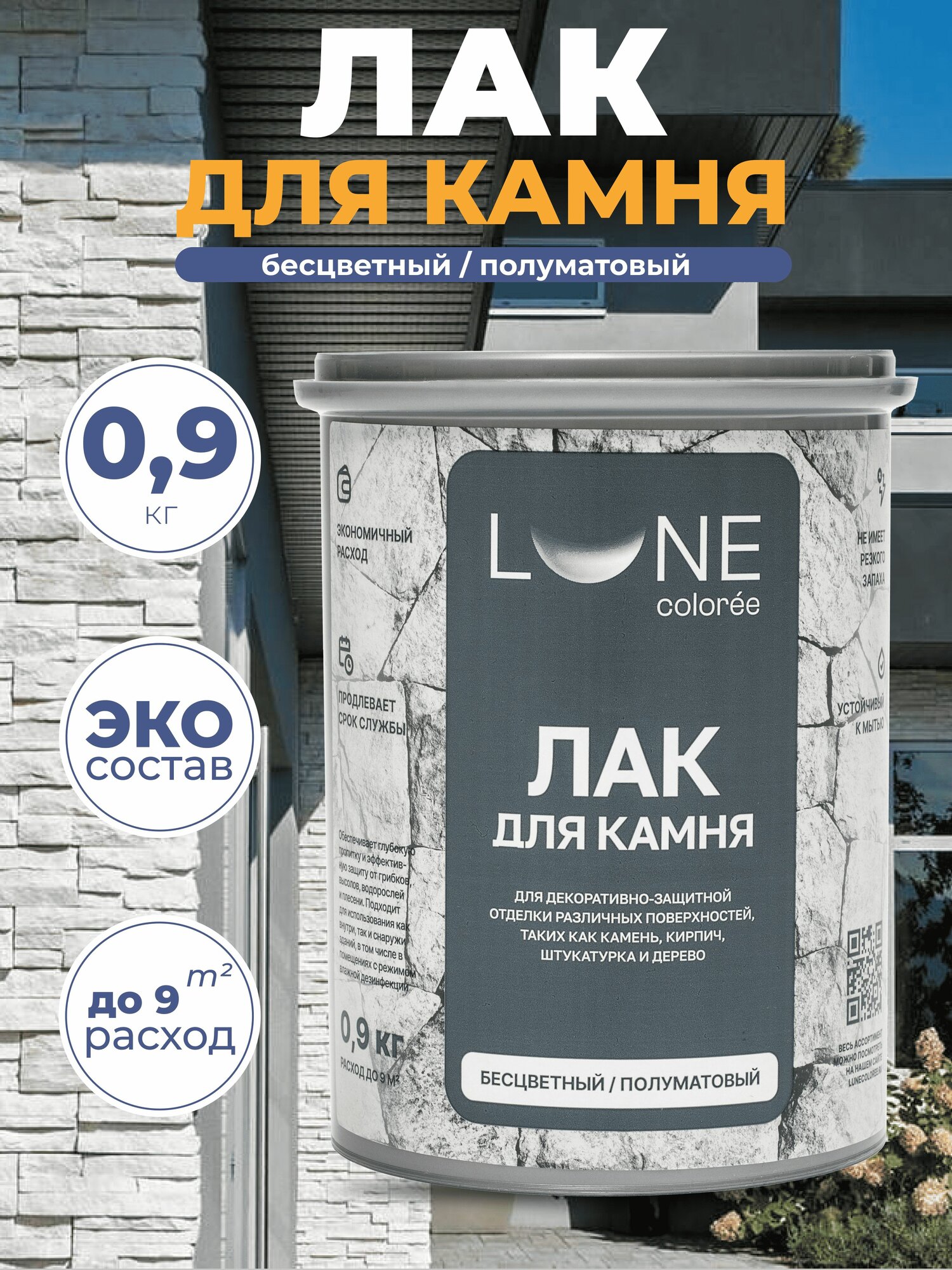 Лак акриловый для камня, бетона, гипса, кирпича с эффектом мокрого камня Lune Coloree бесцветный полуматовый интересное: