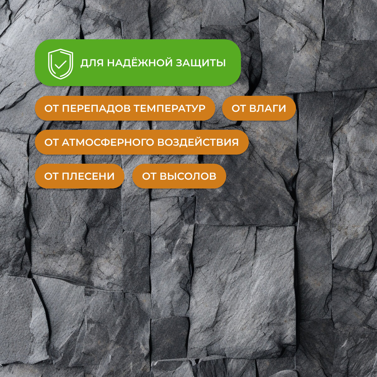 | Особенности | УФ-защита, без запаха, водостойкий, износостойкий, с эффектом мокрого камня, термостойкий |