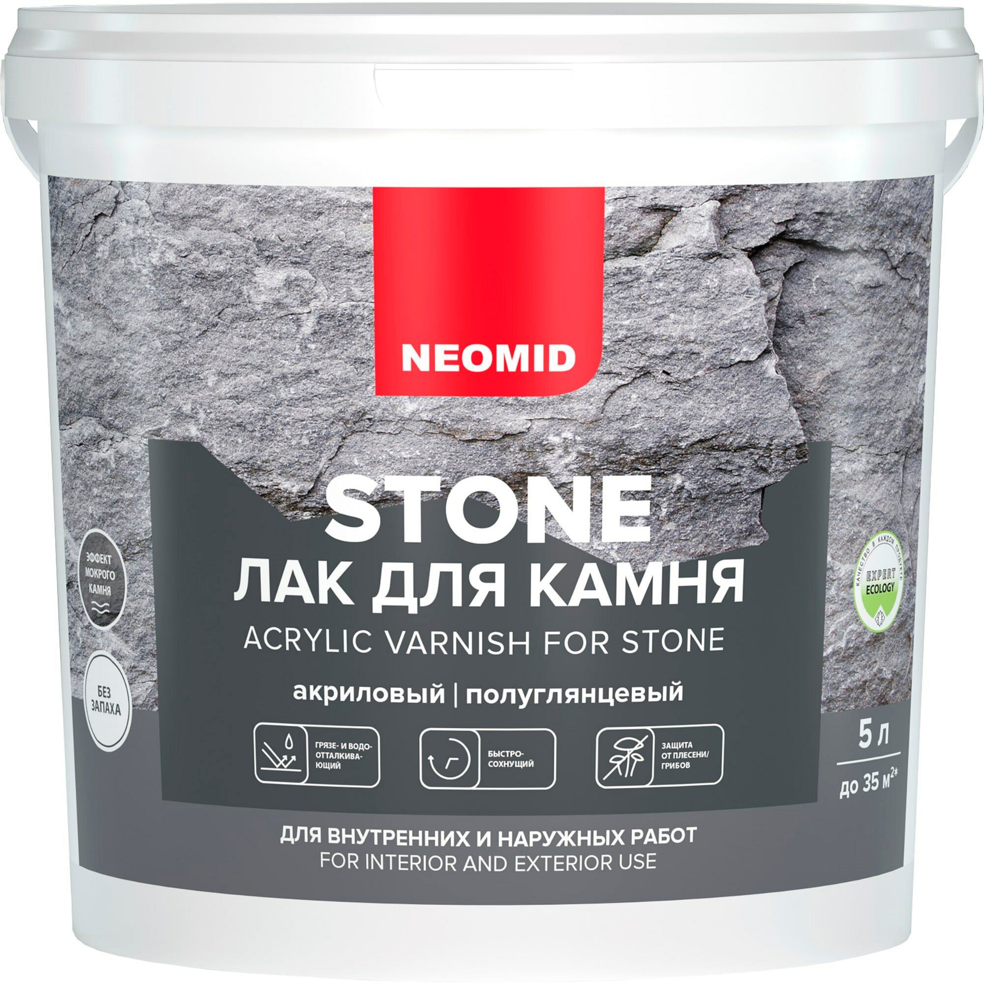 Лак для камня акриловый, полуглянцевый NEOMID STONE 5л / эффект мокрого камня