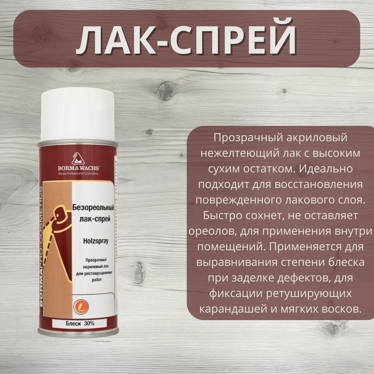 Лак безореольный акриловый BORMA HOLZSPRAY 30% аэрозоль 400мл 0614.30 интересное: