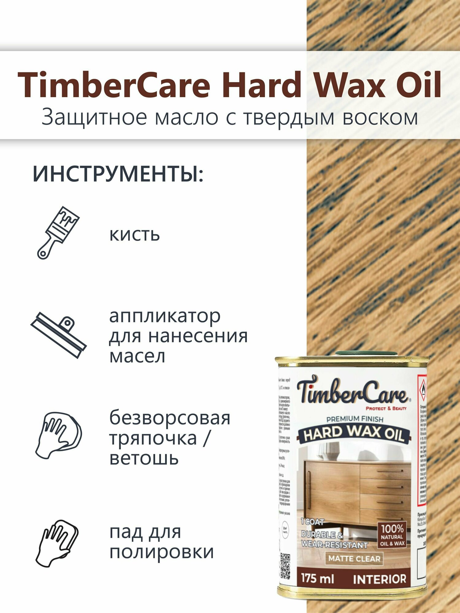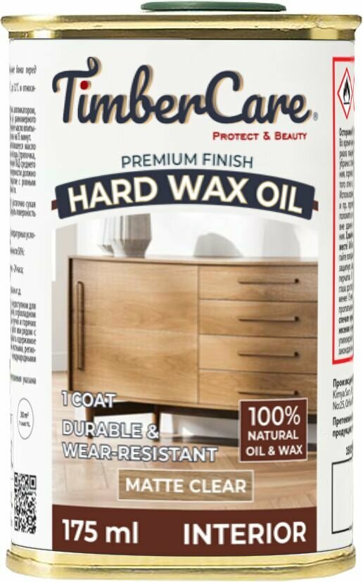 СохранитьМасло для дерева и мебели с твердым воском TimberCare Hard Wax Color Oil, быстросохнущие для внутренних работ, Прозрачное матовое (matte), 0.175 л интересное: