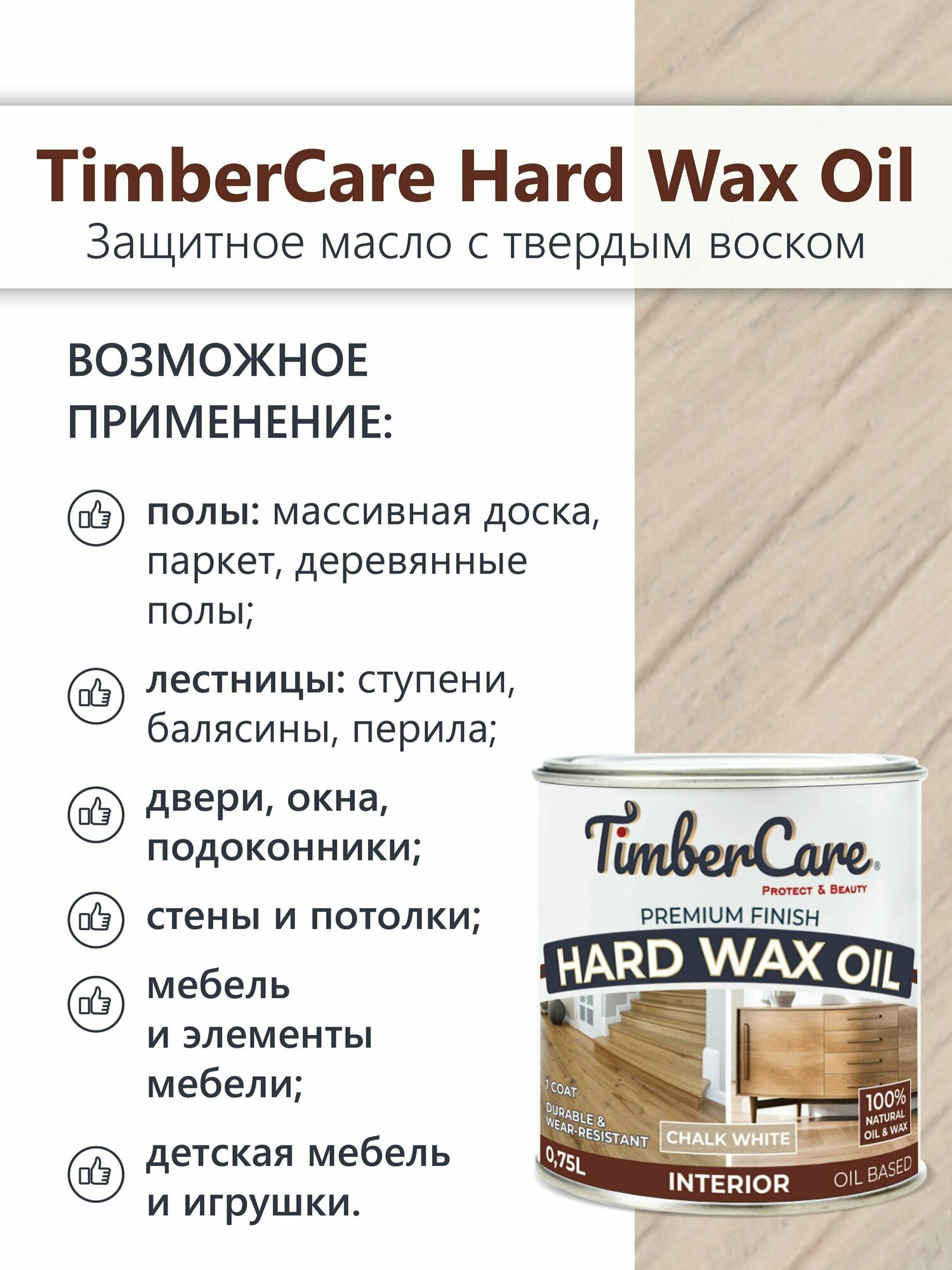 Масло защитное с твердым воском TimberCare Hard Wax Oil (Натуральный) 0,75 л