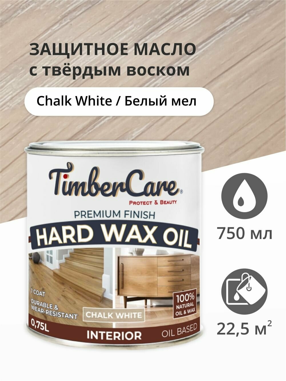 Масло для дерева и мебели с твердым воском TimberCare Hard Wax Color Oil, быстросохнущие для внутренних работ, Античный белый/ Antique White, 0.75 л