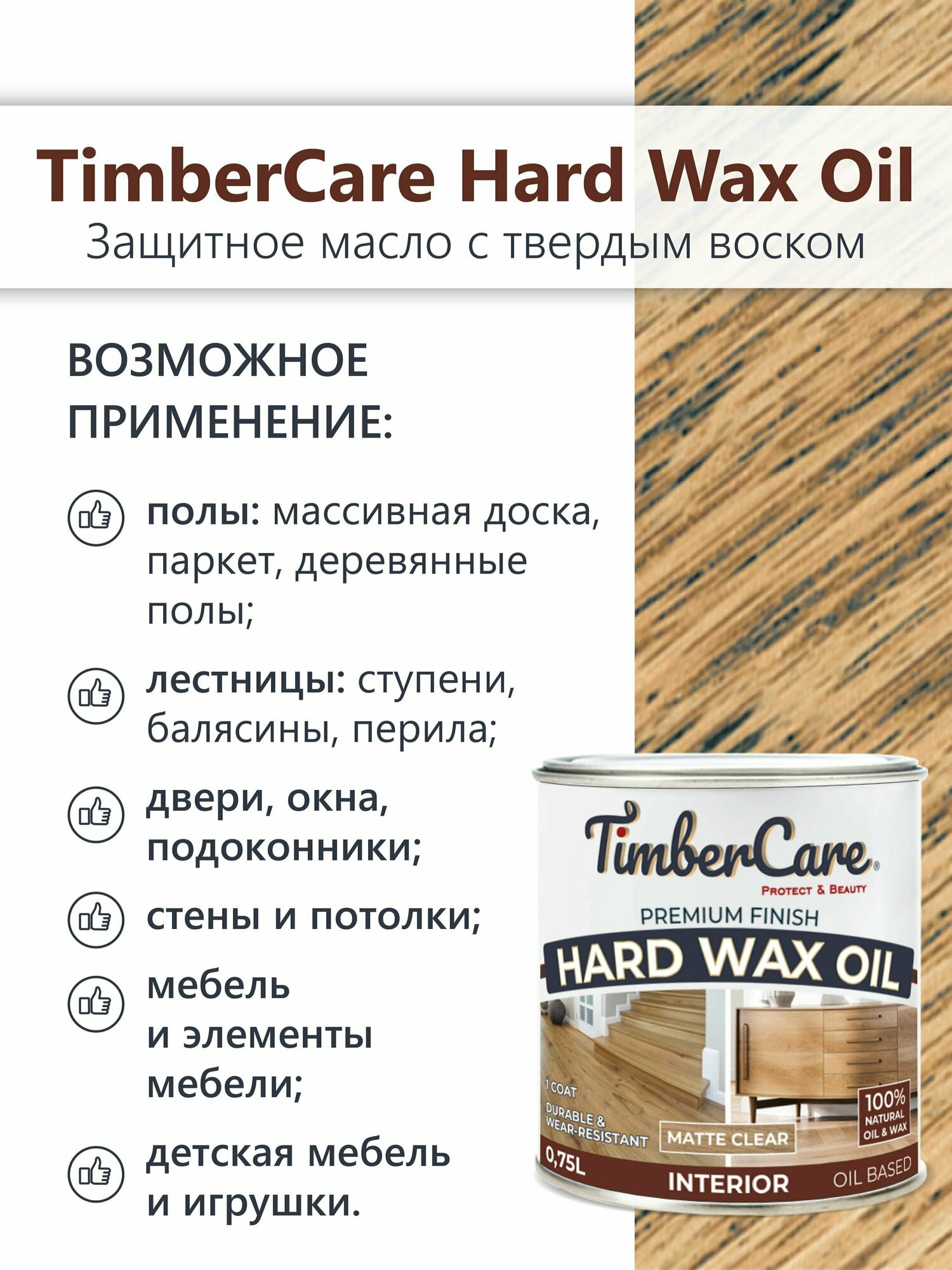СохранитьМасло для дерева с твердым воском TimberCare Hard Wax Color Oil пропитка для дерева для наружных работ Прозрачное матовое (matte), 0.75 л интересное: