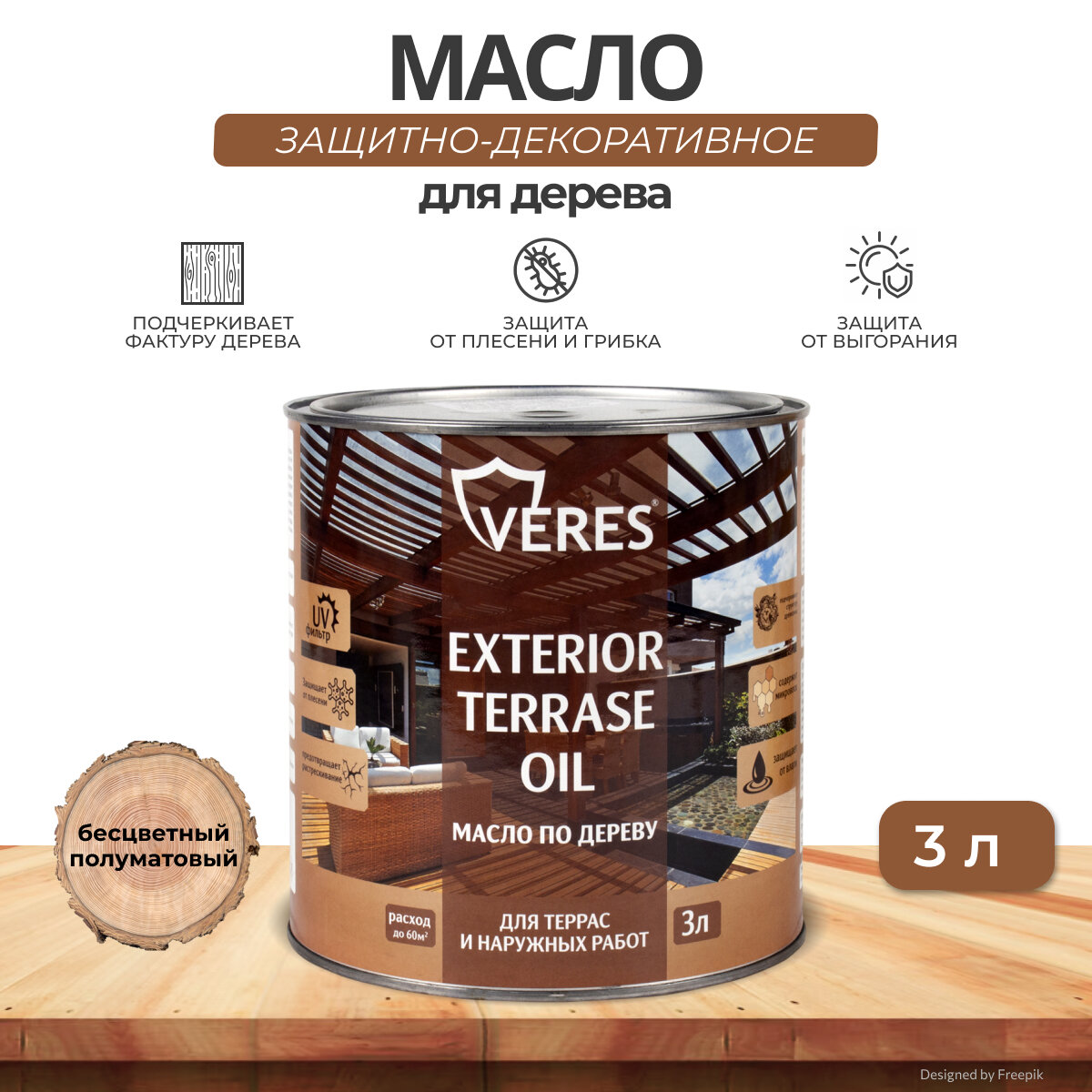 Купить Масло для дерева Veres Exterior Terrase Oil, 3 л, бесцветное