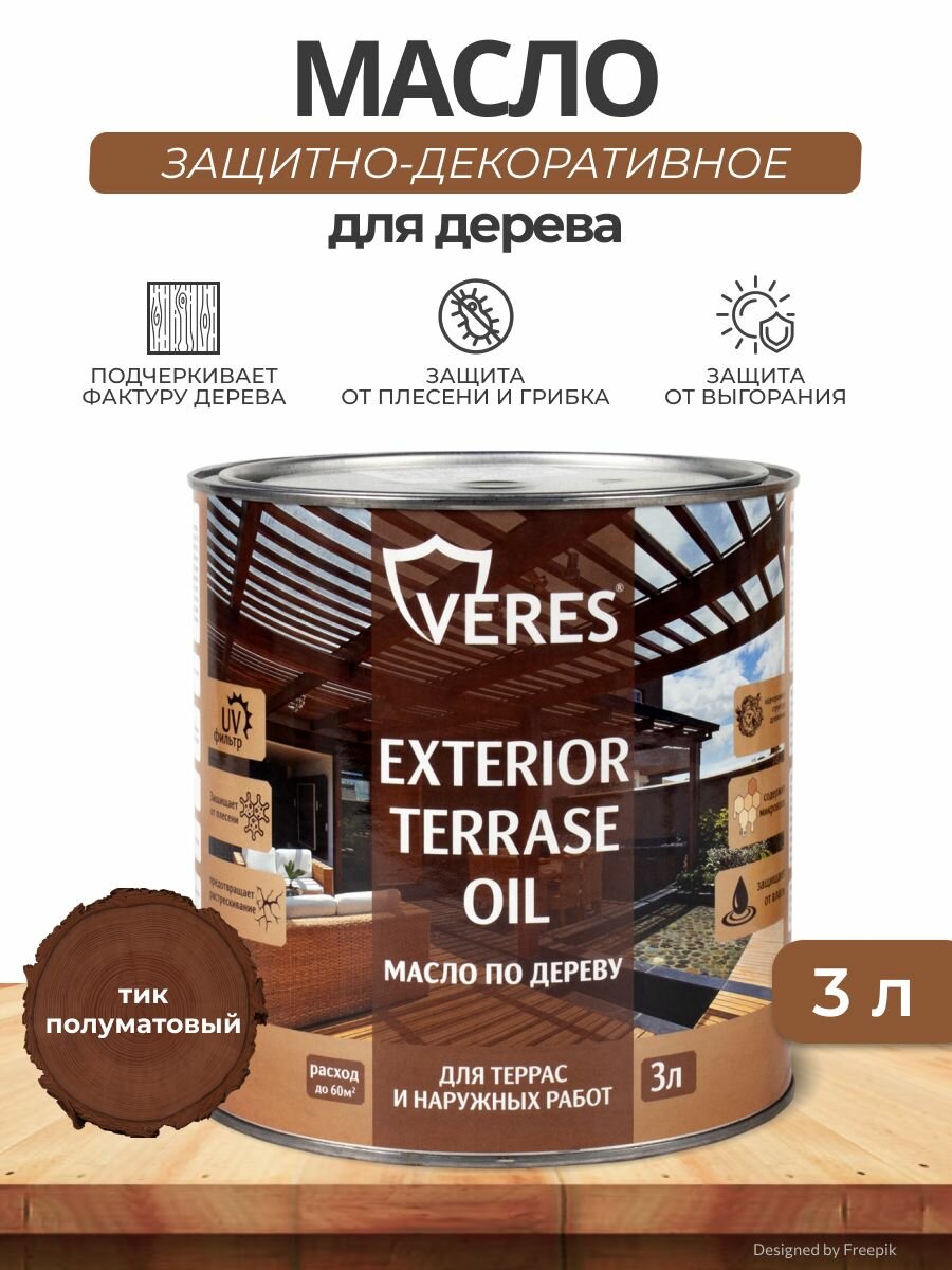 Масло для дерева "Veres" Exterior Terrase Oil, 3 литров, цвет: тик