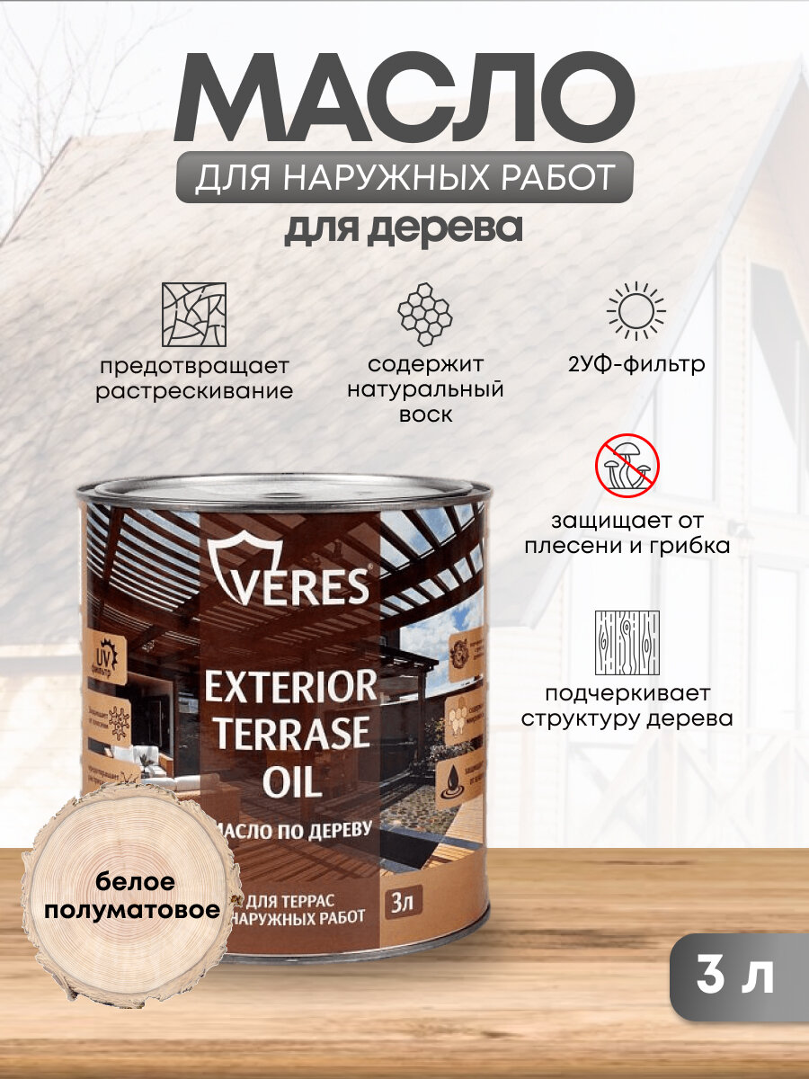 Масло для дерева Veres Exterior Terrase Oil, 3 литр, цвет: белый
