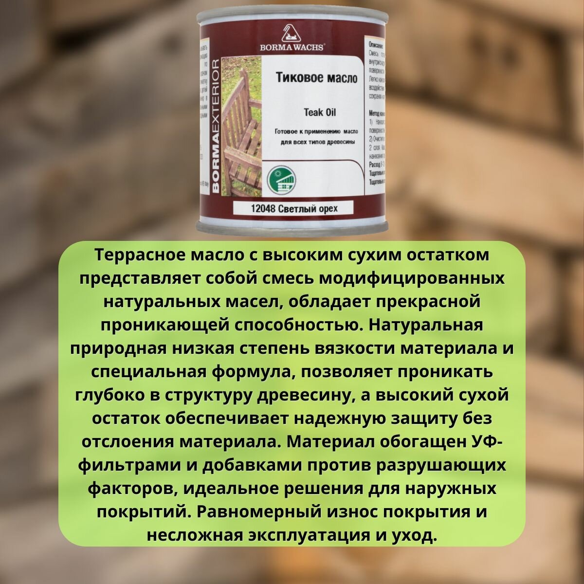 Тиковое масло Borma Teak Oil (1 л 12051 зеленая сосна )