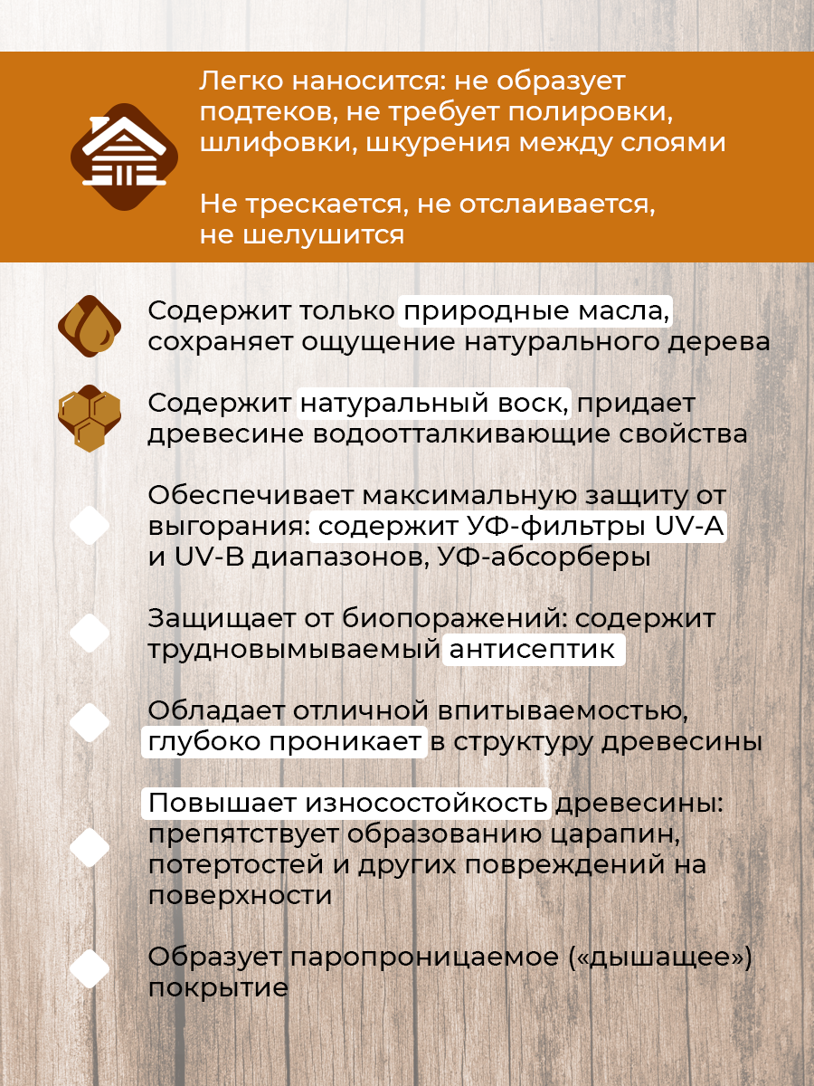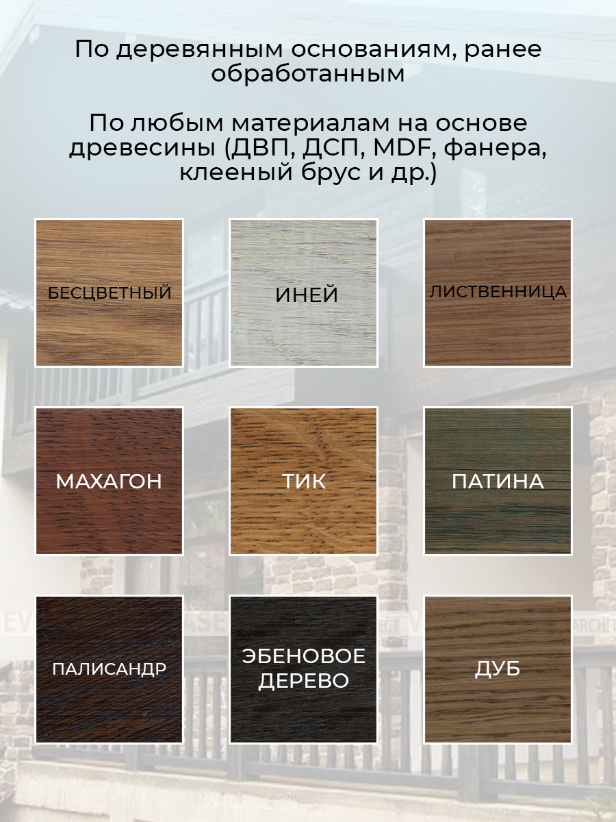 | Особенности | УФ-защита, водоотталкивающее, защита от плесени, износостойкое, морозостойкое, тонирующее |