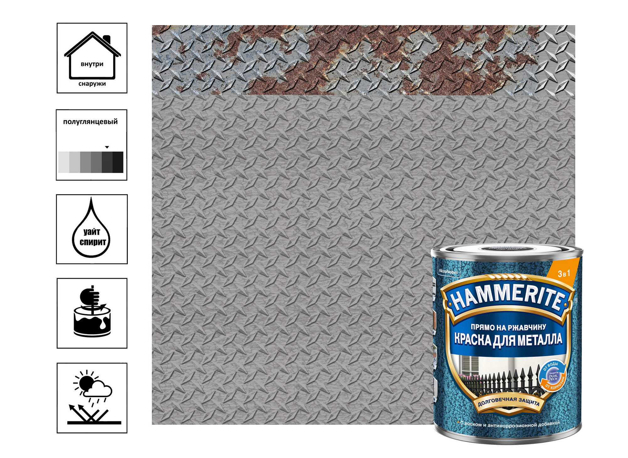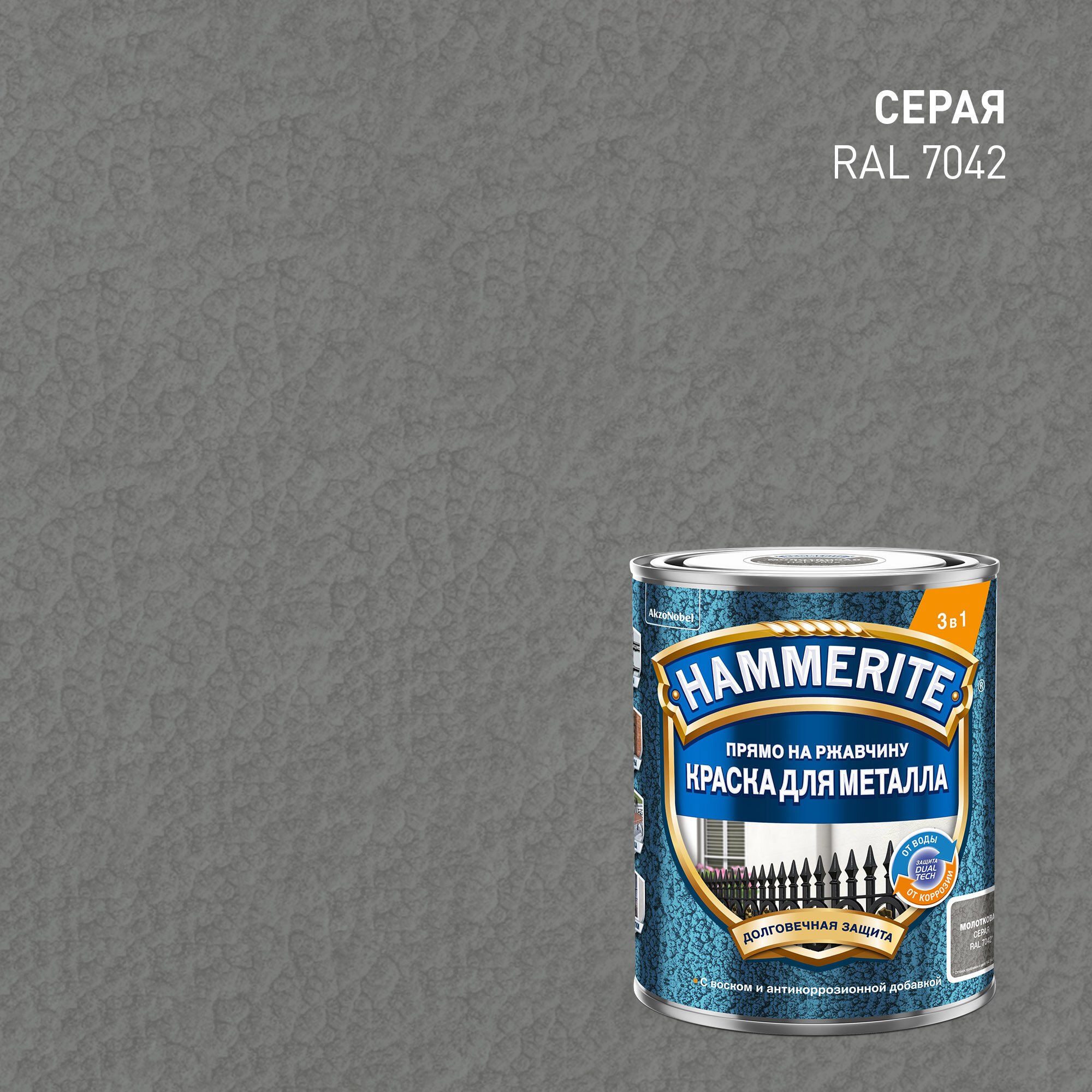 Краска Hammerite для металла прямо на ржавчину 3 в 1 с молотковым эффектом RAL 7042 серая 0,75л