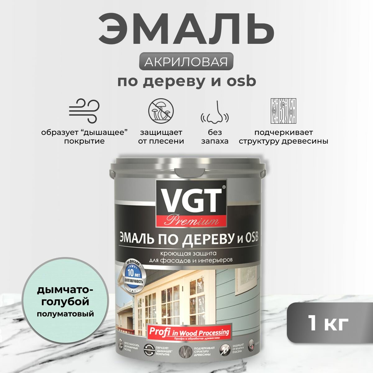 СохранитьVGT PREMIUM ВД-АК-1179 профи эмаль ПО дереву акриловая, полуматовая, дымчато-голубая (1 кг) интересное: