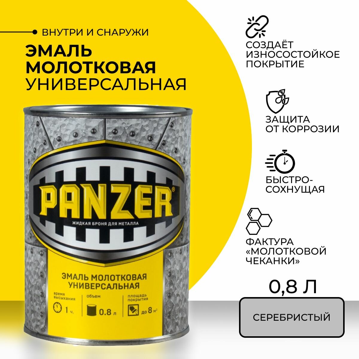 Купить Эмаль универсальная Panzer , молотковая, 0,8 л, серебристая