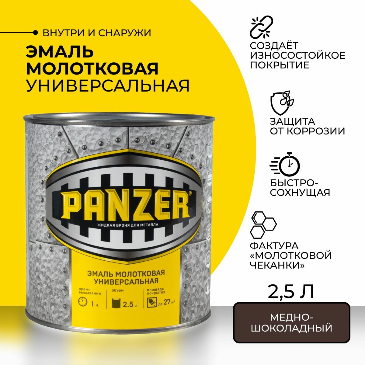 Эмаль универсальная Panzer, молотковая, 2,5 л, шоколадная, 1шт, жестяная банка