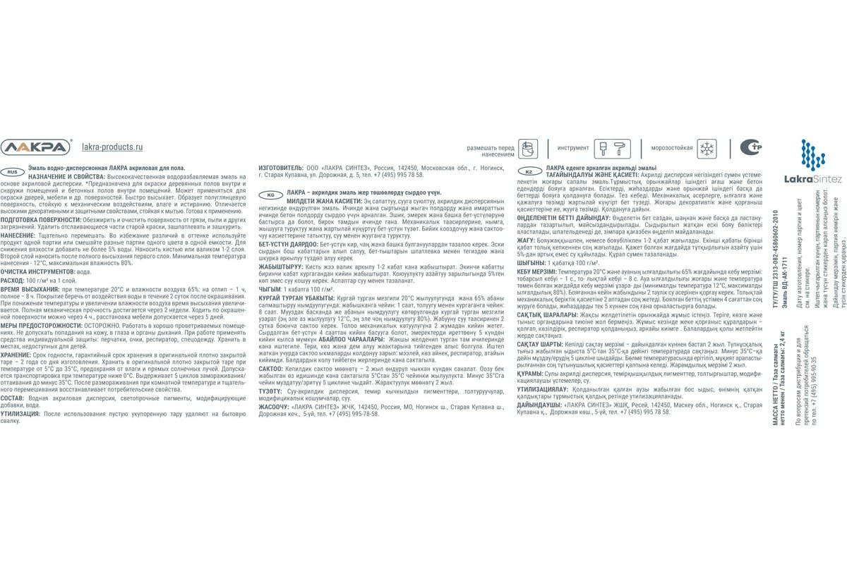 Купить Акриловая эмаль для пола лакра 90003485911