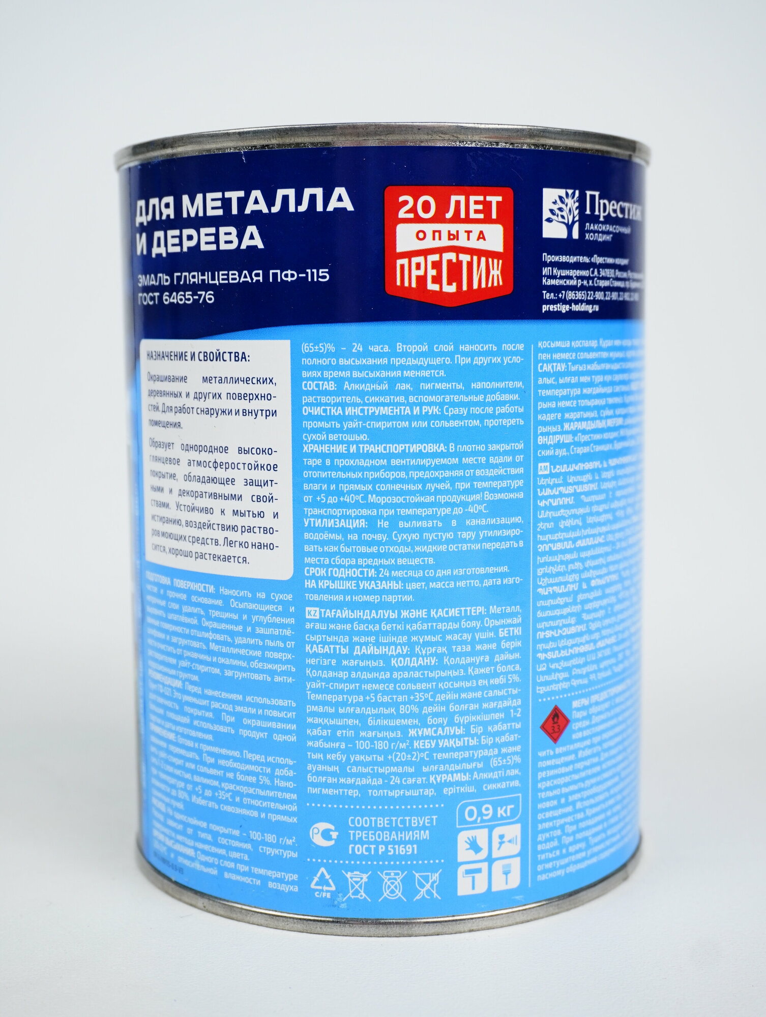 Эмаль ПФ-115 для металла и дерева Престиж, алкидная, глянцевая, 0,9 кг, синяя, 1шт, металлическая банка