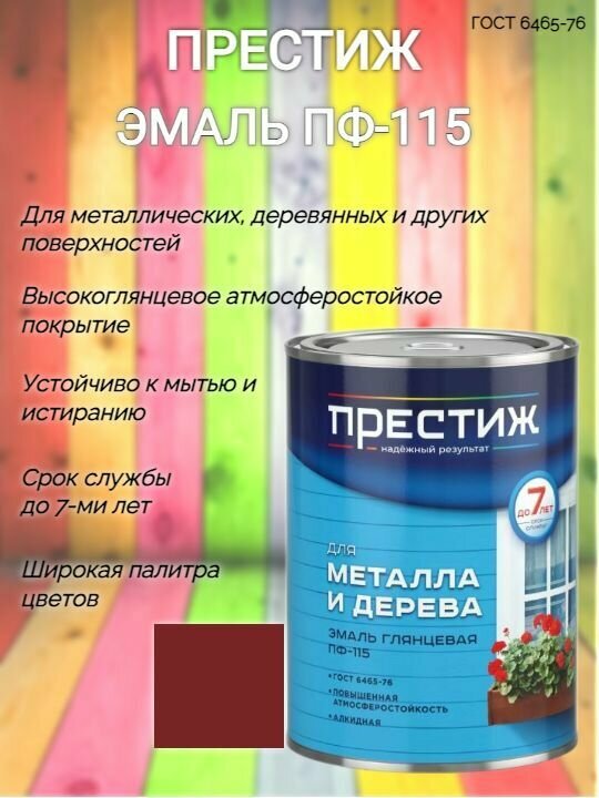 Эмаль ПФ-115 для металла и дерева Престиж, алкидная, глянцевая, 0,9 кг, красно-коричневая