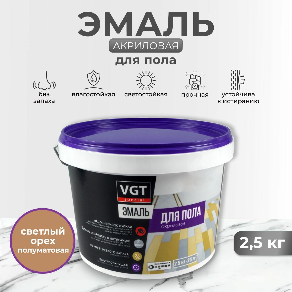 Эмаль для Пола VGT ВД-АК-1179 2.5кг Светлый Орех, Акриловая, Полуматовая по Дереву и Бетону без Запаха / ВГТ для Пола.