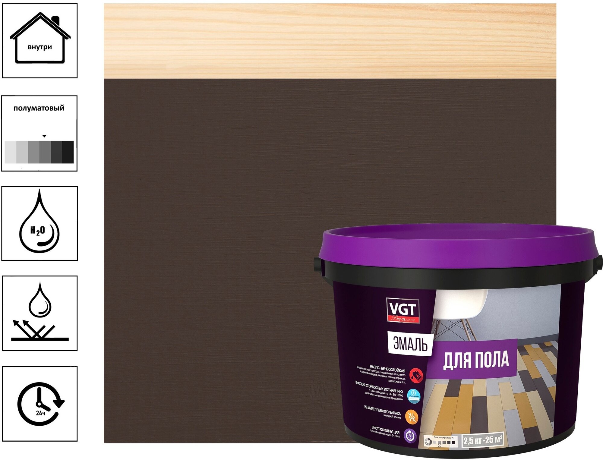 ВГТ / Эмаль для пола "Профи" VGT ВД-АК-1179, акриловая, полуматовая, шоколадно-коричневая RAL 8017 2.5 кг.
