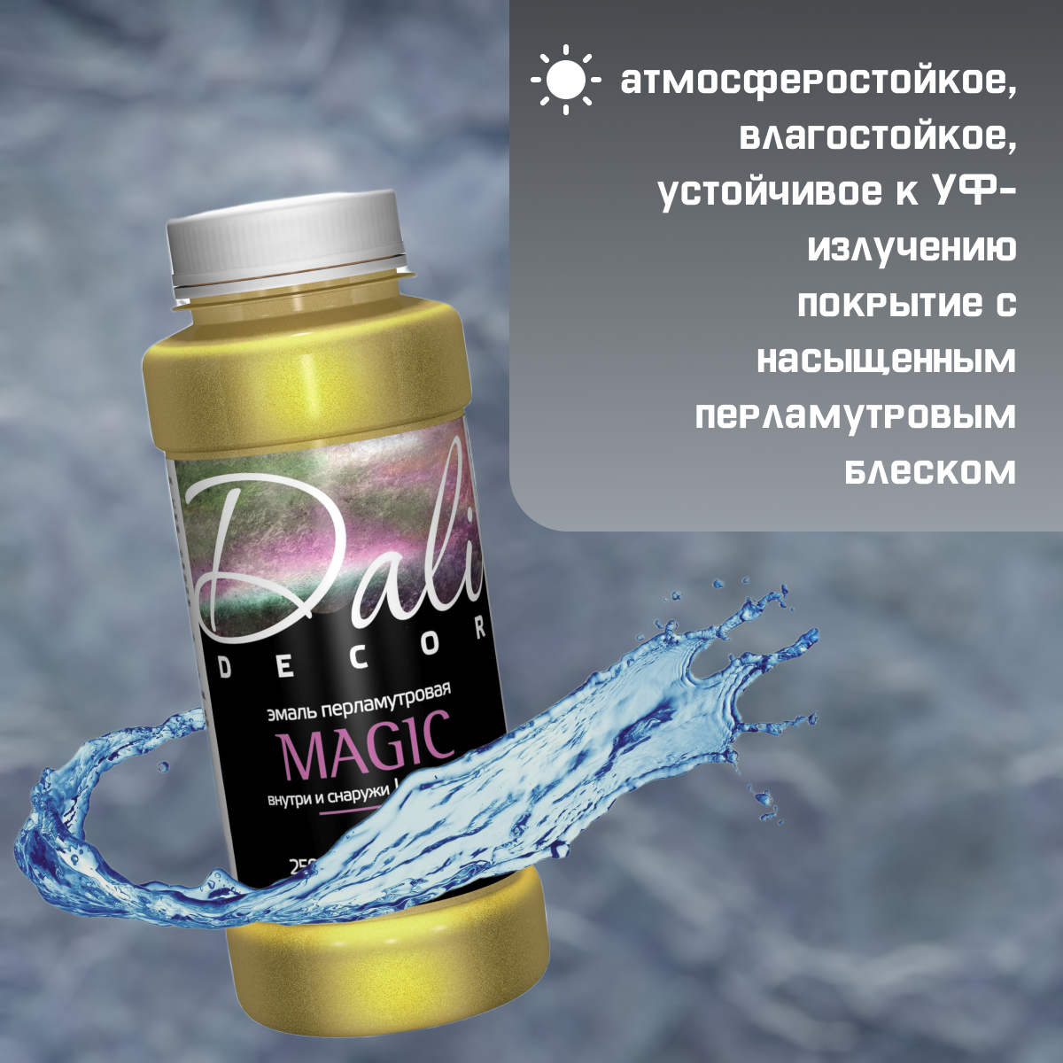 | Дополнительная информация | Эмаль акриловая DALI DECOR Magic декоративная 0,25л перламутровая золото, арт.20524 |