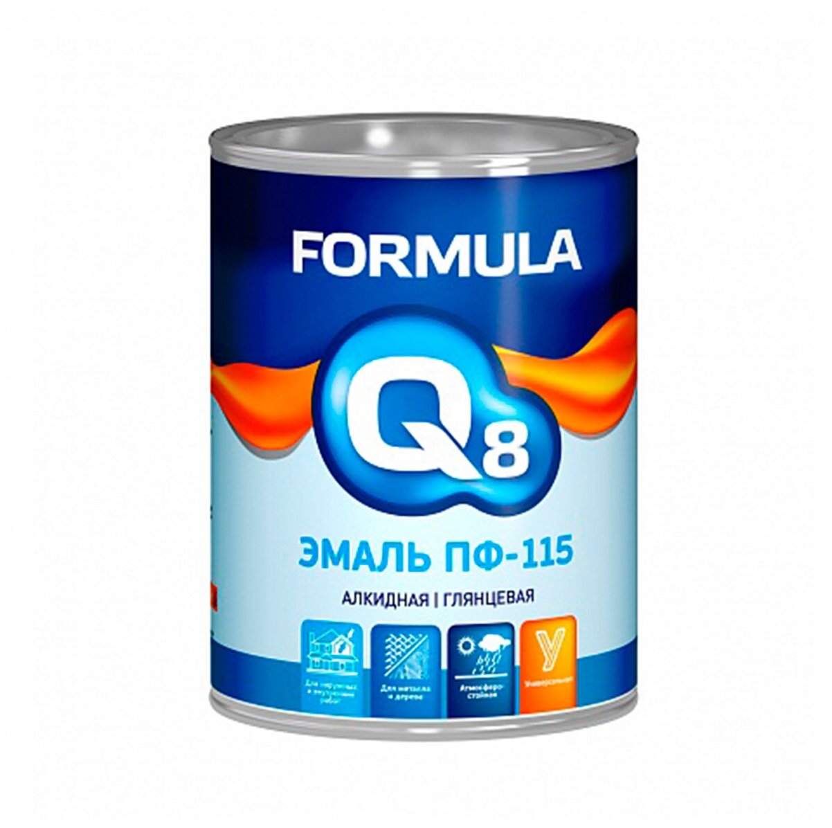 Эмаль ПФ-115 алкидная Formula Q8, глянцевая, 0,9 кг, серая, 1шт, металлическая банка