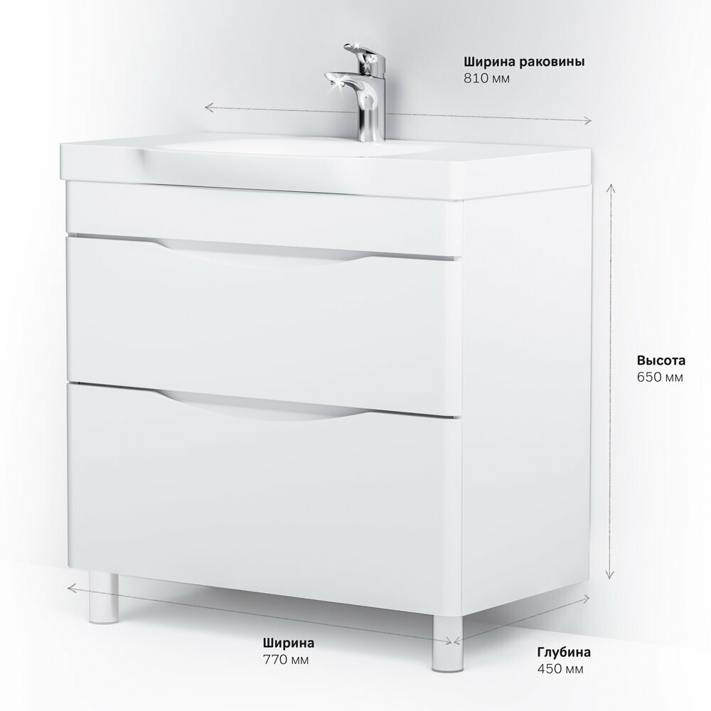 Тумба под раковину M80FSX0802WG Like напольная, 80 см, 2 ящика, белый, глянцевая, шт