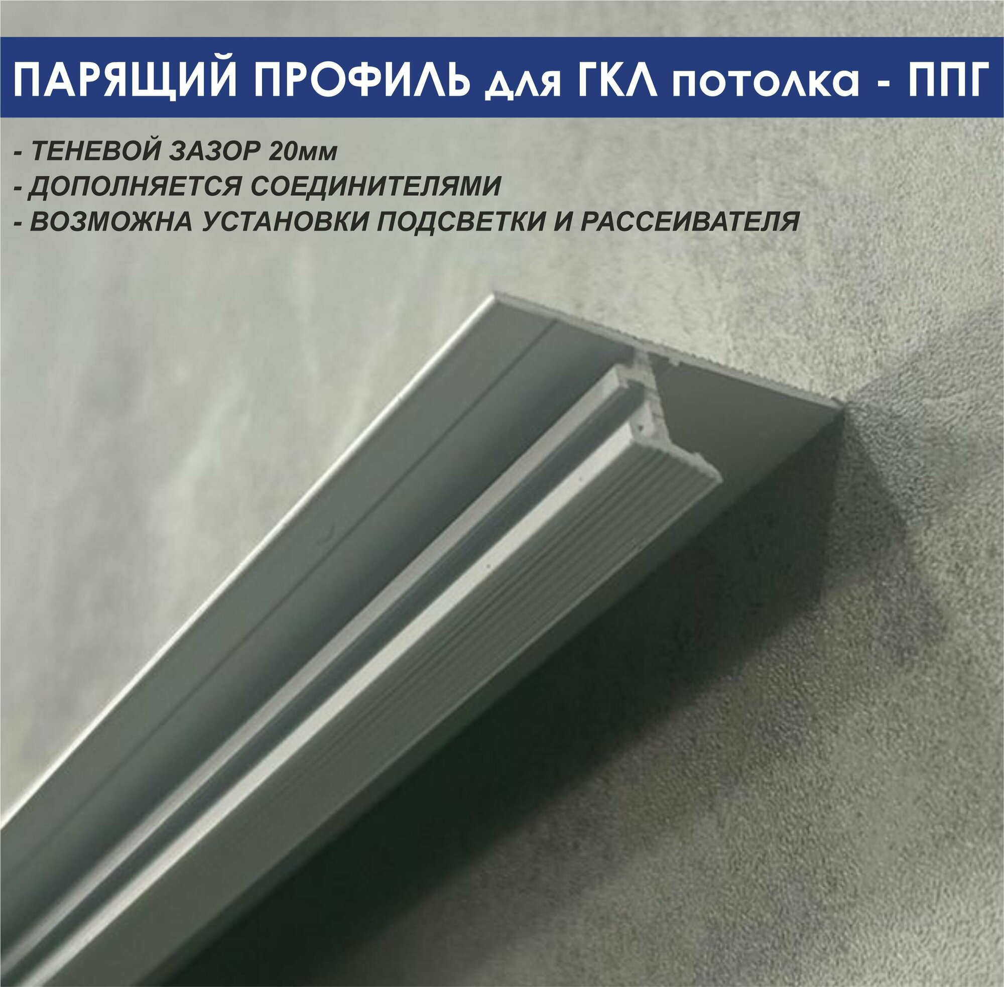 Теневой профиль для ГКЛ потолка - парящий, OSKprofil ППГ-20 белый 2 метра интересное: