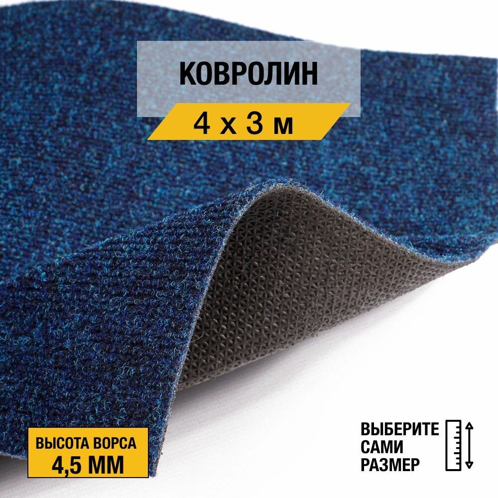 Ковролин, напольное покрытие "Dessert 85" 3х4 м. Ковролин метражом "Betap", коллекция Dessert, иглопробивной, синего цвета с высотой ворса 4,5 мм.