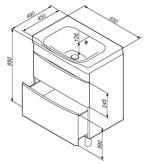 M80FSX0652WG Like, База под раковину, напольная, 65 см, 2 ящика, белый, глянцевая, шт