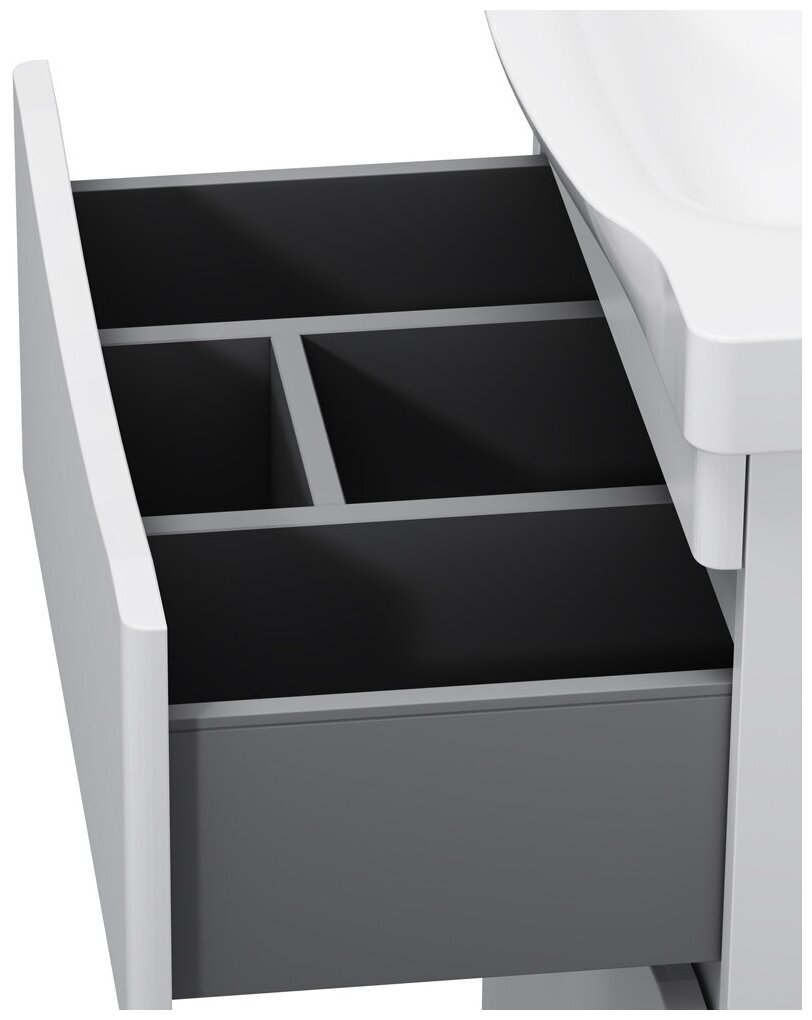 | Отзыв: | Дизайн просто на высшем уровне. Выглядит дорого и стильно. Очень необычная форма раковины из этой же коллекции сразу бросается в глаза и привлекает внимание. Пользоваться ей удобно, хотя я думал, что чаша будет маловата. На самом деле все ок. Тумба тоже супер — доводчики в ящиках — это 100 баллов! Качество сборки и проклейки стыков очень хорошее и вызывает доверие. Ящики вместительные. |