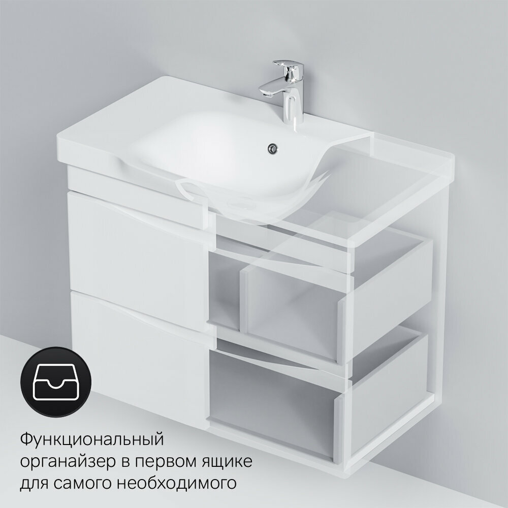 Like База под раковину, подвесная, 80 см, 2 ящика, белый, глянцевая M80FHX0802WG