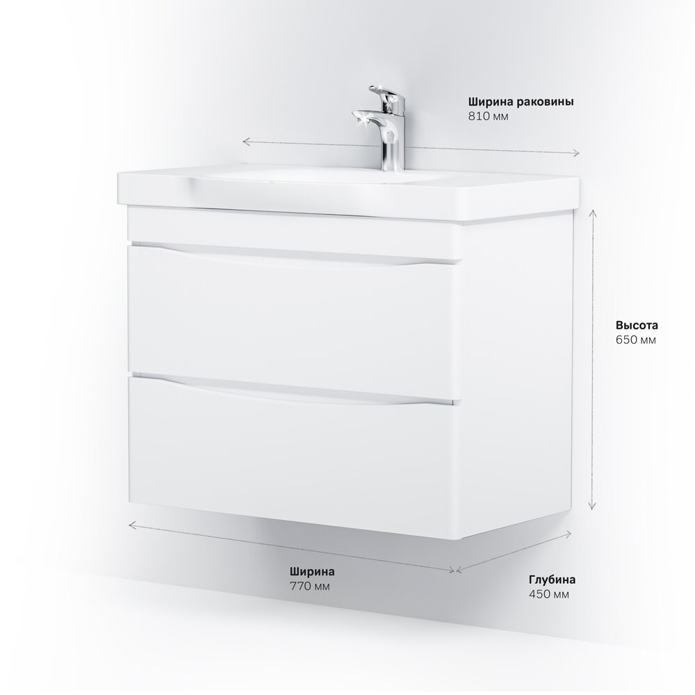 M80FHX0802WG Like, База под раковину, подвесная, 80 см, 2 ящика, белый, глянцевая, шт