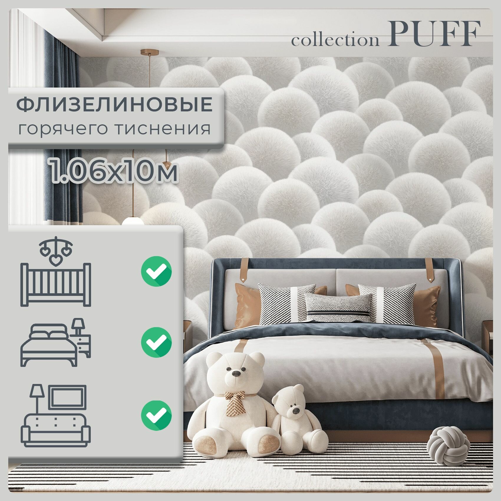 Обои виниловые на флизелине 1,06, в детскую, AnturAGe "Puff", AN8889-12 интересное:
