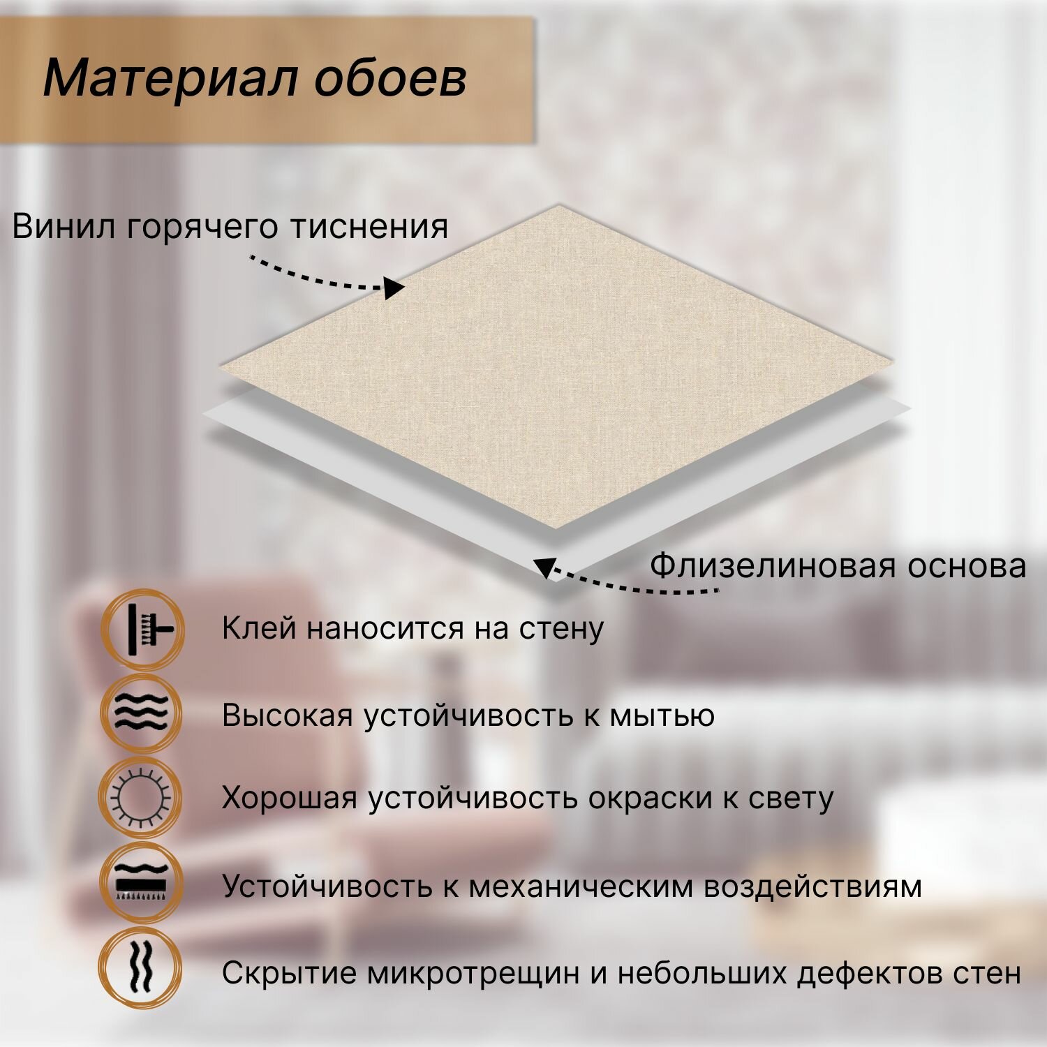| Вид виниловых обоев | горячего тиснения (шелкография) |