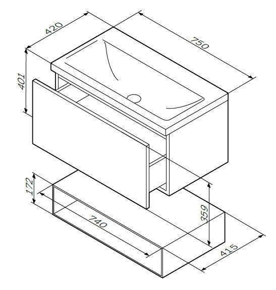 СохранитьM90FHX07521WG GEM, База под раковину, подвесная, 75 см, 1 ящик push-to-open, цвет: белый, глянец интересное: