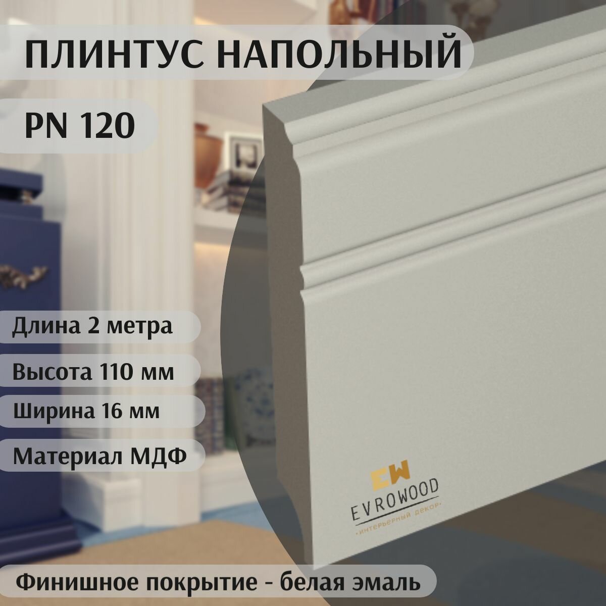 Купить Плинтус напольный МДФ PN120 110х16х2000 EVROWOOD Белый или под покраску 1ШТ