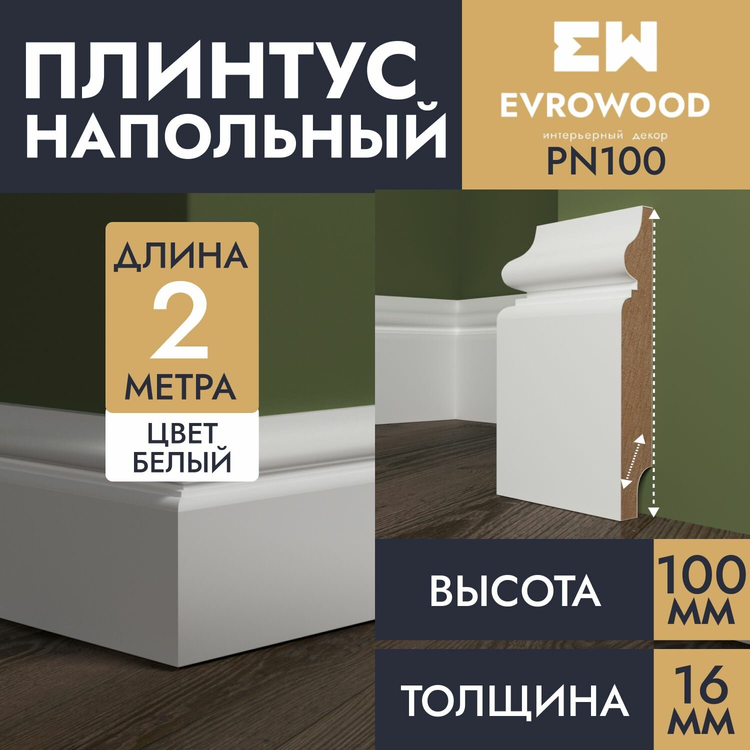 Плинтус напольный МДФ PN101 100х16х2000 EVROWOOD Белый или под покраску 1ШТ