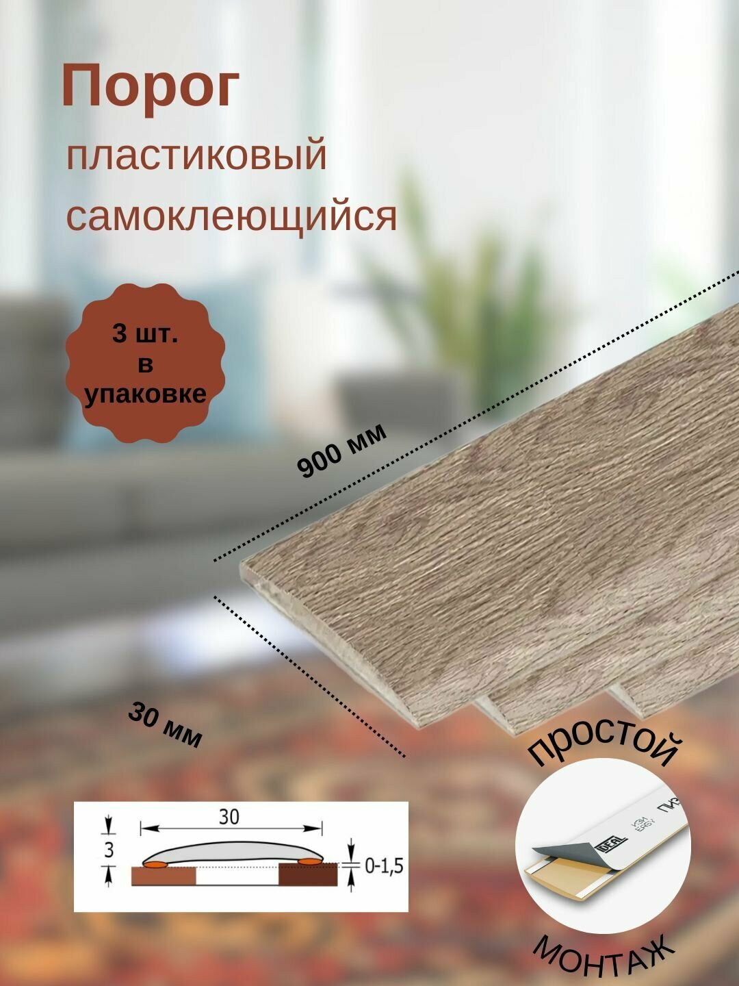 Порог самоклеящийся из пластика 3шт. ИЗИ 30.900.229 для напольных покрытий; Дуб латте 30 х 900 мм