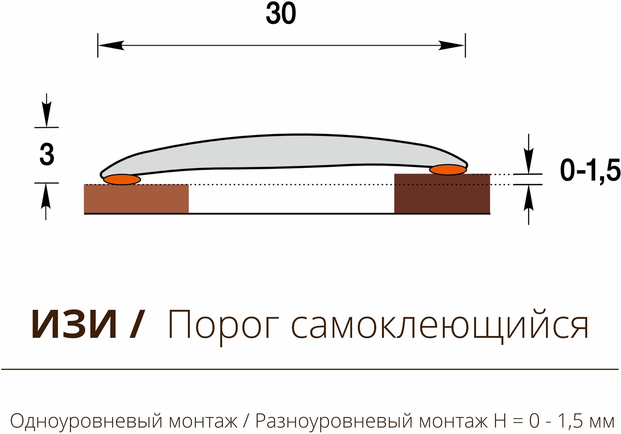 Порог самоклеящийся из пластика ИЗИ 30.900.292 для напольных покрытий; Орех миланский 30 х 900 мм