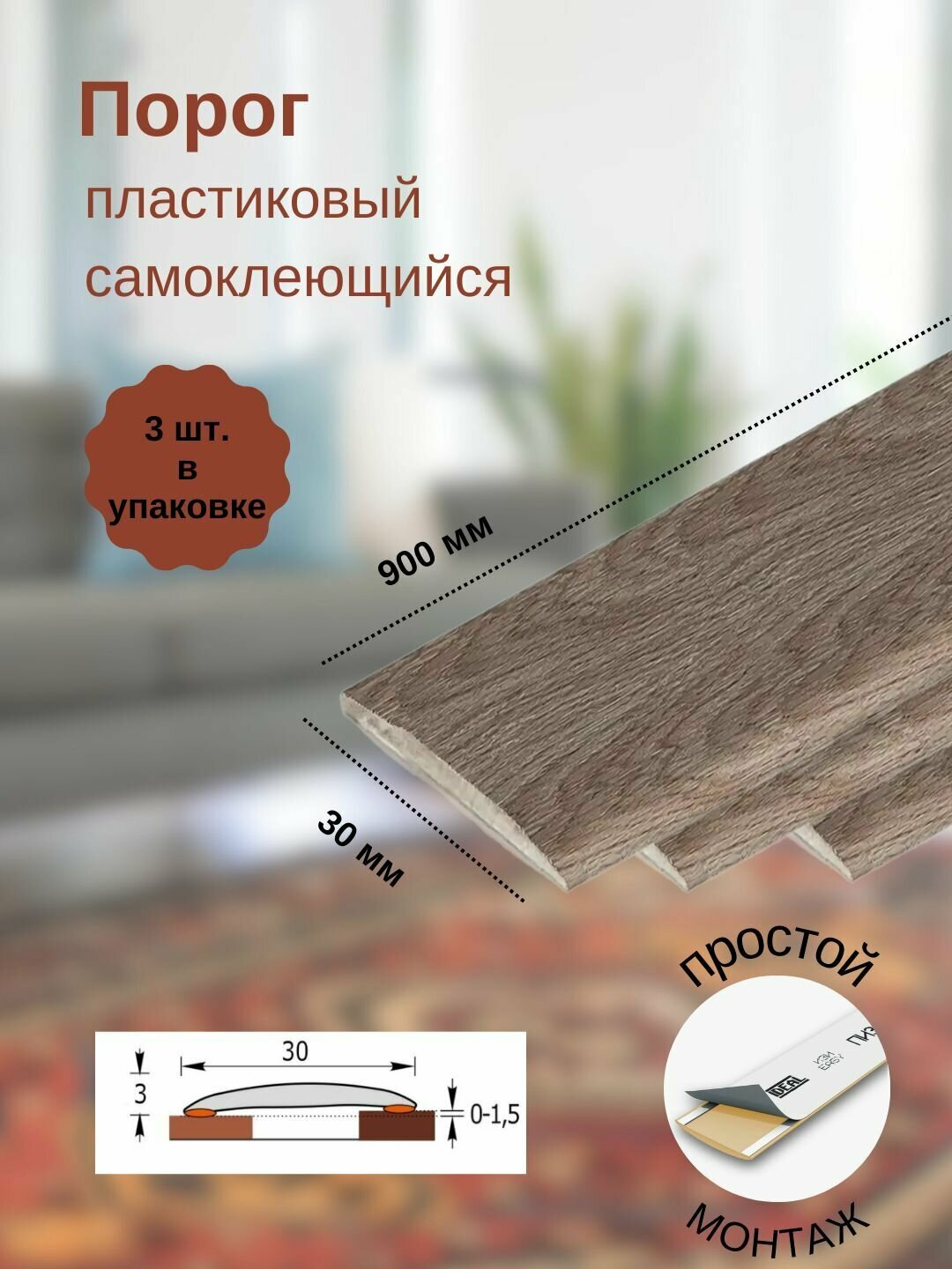 Порог самоклеящийся из пластика 3шт. ИЗИ 30.900.208 для напольных покрытий; Дуб мокко 30 х 900 мм