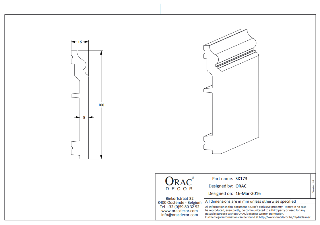 Купить Плинтус из дюрополимера Orac Decor SX173 (100*16*2000мм)