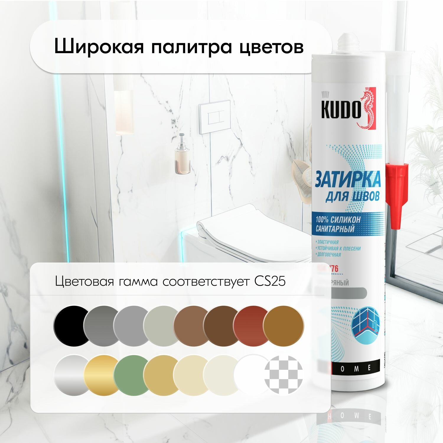 Герметик-затирка силиконовый Kudo Home KSK-160, санитарный, серебряный, 280 мл