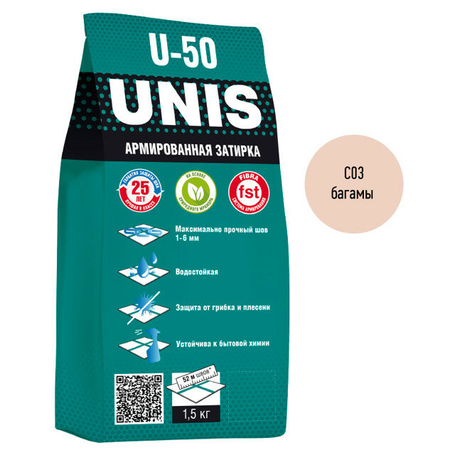 Сохранитьзатирка для швов UNIS U-50 армированная 1-6мм 1,5кг багамы, арт.U50-C03-1,5 интересное:
