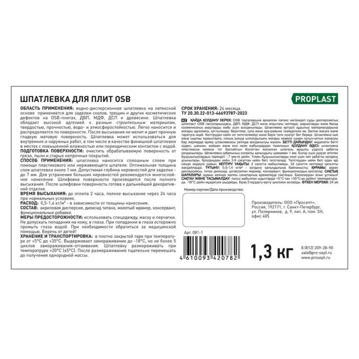 Ниже Вы можете прочитать отзывы на Шпатлевка для плит PROSEPT OSB Proplast 1,3 кг, ознакомится с подробными характеристиками, посмотреть интересные обзоры и фотографии на Шпатлевка для плит PROSEPT OSB Proplast 1,3 кг.